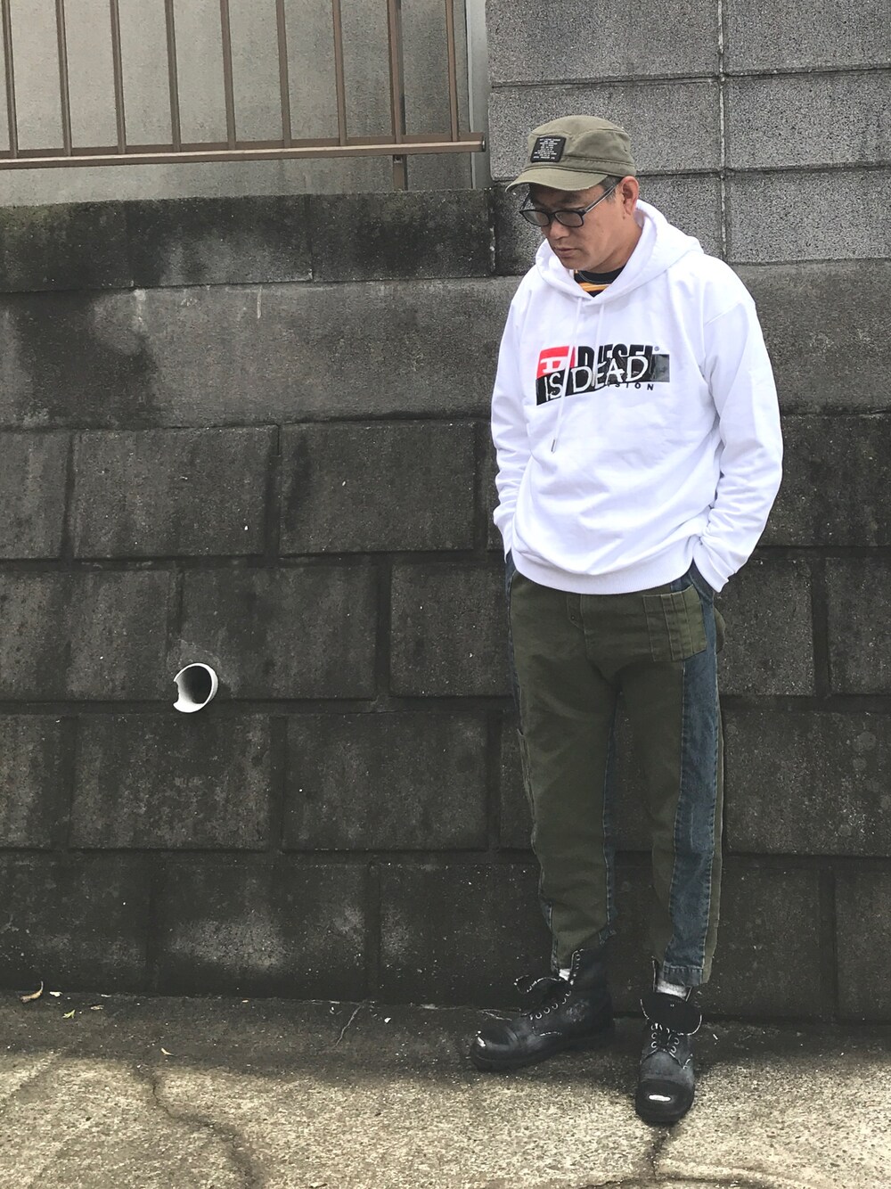 今更ですがhatecouture フーディは最近オーバーサイズに飽きてきたので、あえてSサイズ ストライプのTシャツはdieselのサンプル品