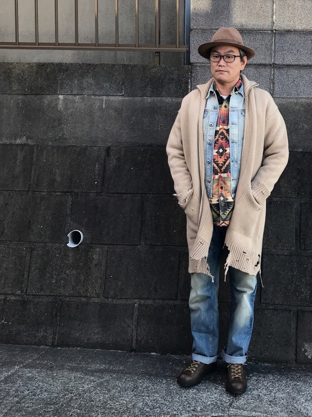 アーカイブコレクションからのselect ナバホ柄👕は当時日本未発売モデルだったはず? denimは VIKER-R-BOX ダブルフロントボタン の廃番品 ボロボロな土臭さをちょっとだけ演出してみました そろそろ春物でコーデかな?