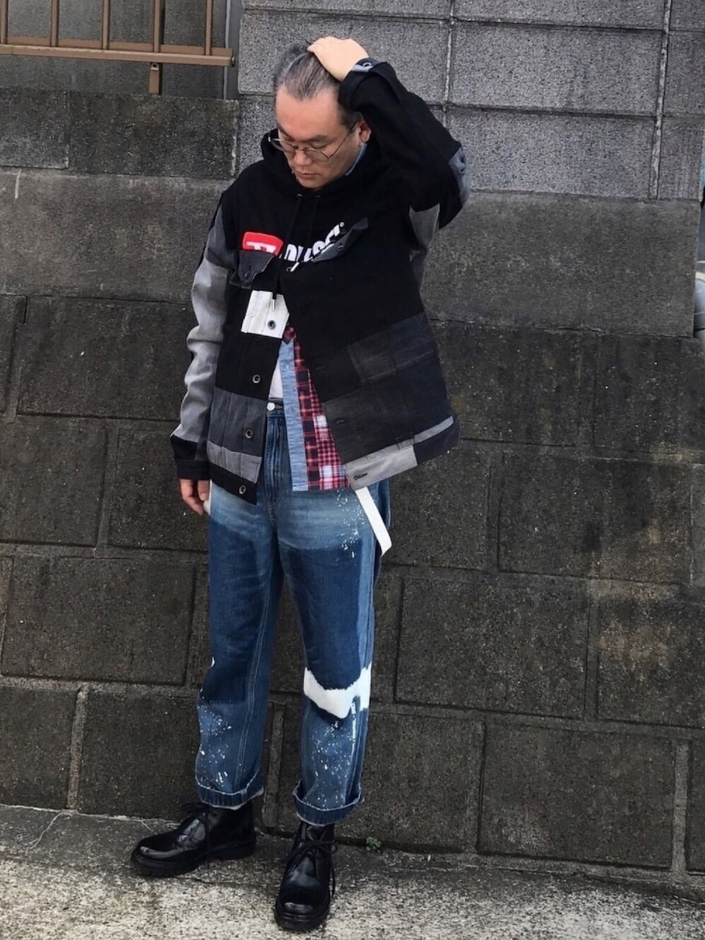 DIESEL と55DSLのコラボ企画㊗️ フーディとUP-CYCLING DENIM を組みあせたアウター XL サイズをchoice もう二度と出ないitem 変わり種アウターとペインターパンツにサスペンダーでコーデしてみました
