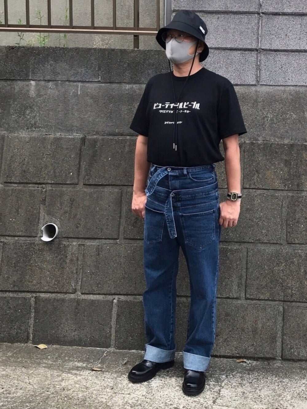 久しぶり買い物行く軽いコーデ BLACKとIndigoでのカラーリング デニムはDIESEL RED-TAG Shayne Oliver T shirt はonlineと渋谷パルコ限定(やっと着れる) このデニムにはタックインしかない