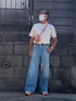 ひろのデニムパンツ「メンズ デニムパンツ ルーズフィット ストレート」を使ったコーディネート