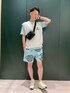 今回のコーディネートはコットン100%ニット素材Vネックニットベストを着用! トレンドに寄り添うリラックスフィットシルエット! インナーは爽やかなミント色のTシャツを合わせました^ - ^ そして、パンツはグローブグラフィックが主張する総柄スイムショーツと組み合わせました!とても軽くて履きやすいため猛暑日でも即戦力になりまーす! 【着用サイズ】 ニット 5 Tシャツ5 パンツ M シューズ 42