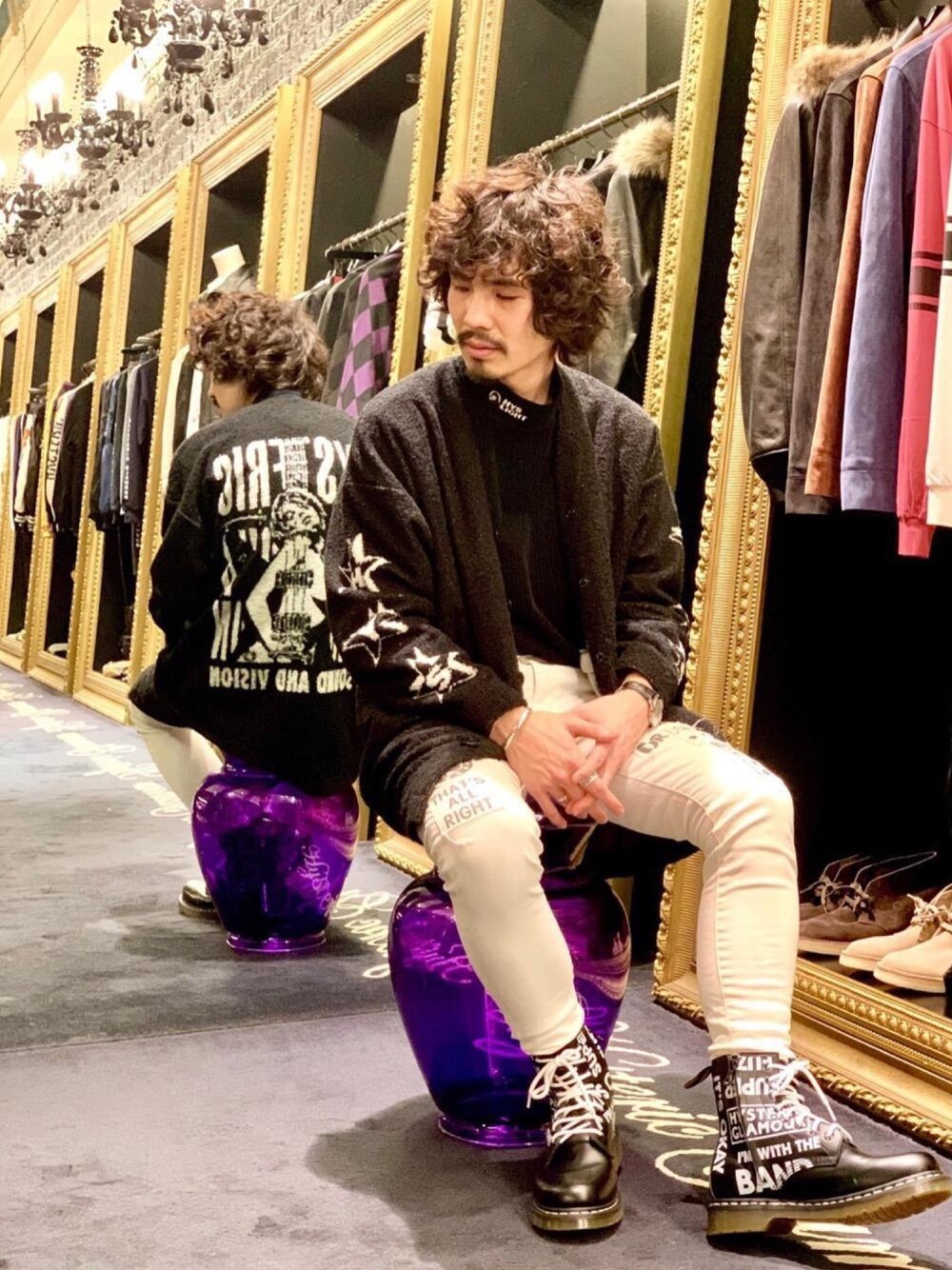 背中のジャガードデザインが特徴のロングカーディガンは、ユニセックスで使える便利アイテムです。