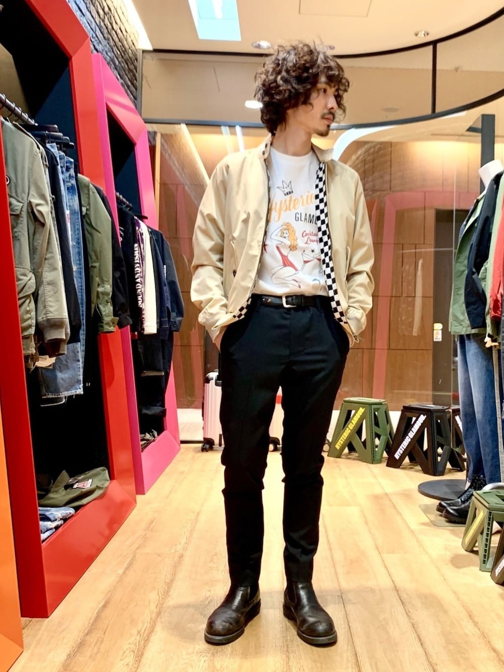 裏地がチェッカー柄のG9ハリントンジャケットを使ったクラシックコーデ。