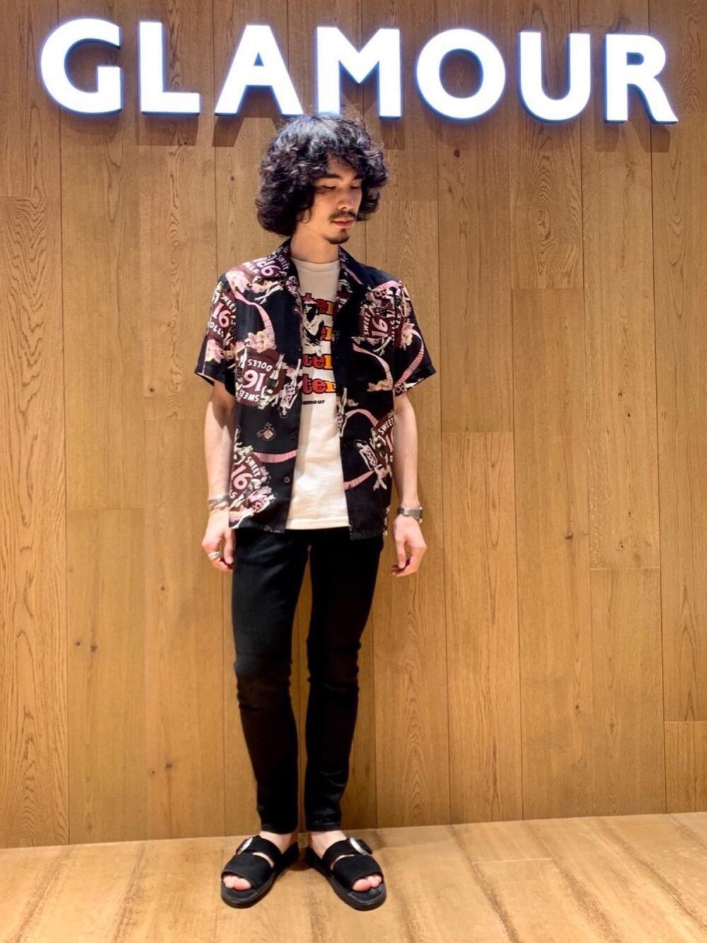 ブランド初期のプリントを施したアロハシャツは、黒スキニーでタイトに合わせても男らしくて良いです。