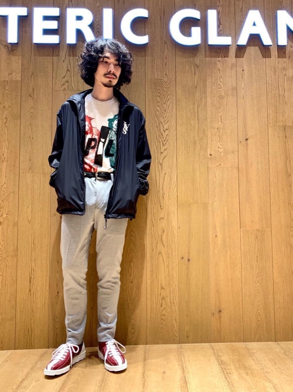 スラックスはナイロンジャケットと合わせると程良くカジュアルダウンされます。