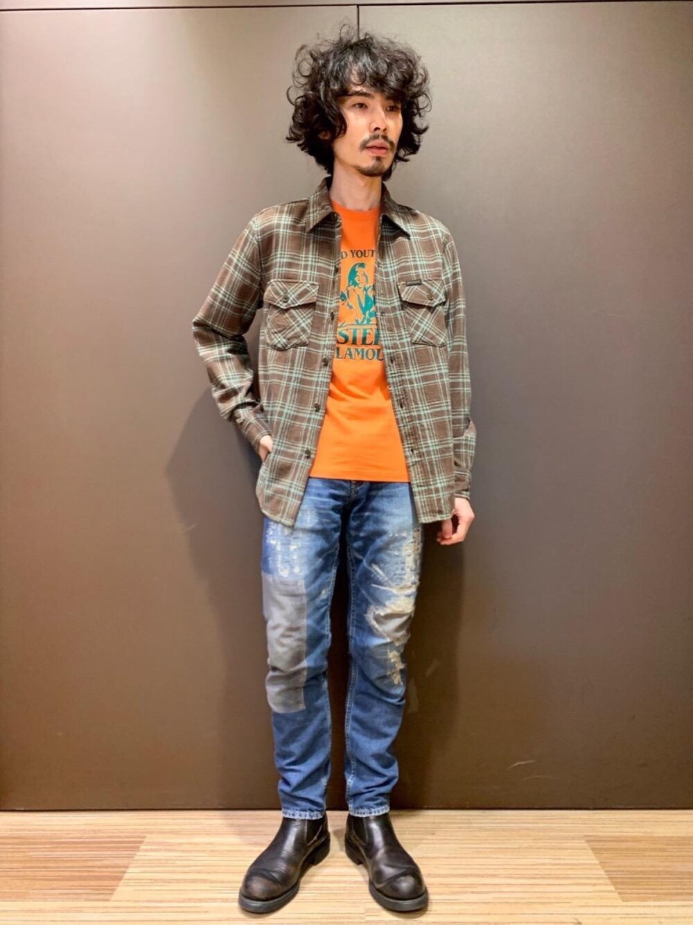 ウール混のチェック柄CPOシャツを使ったアメカジコーデ。