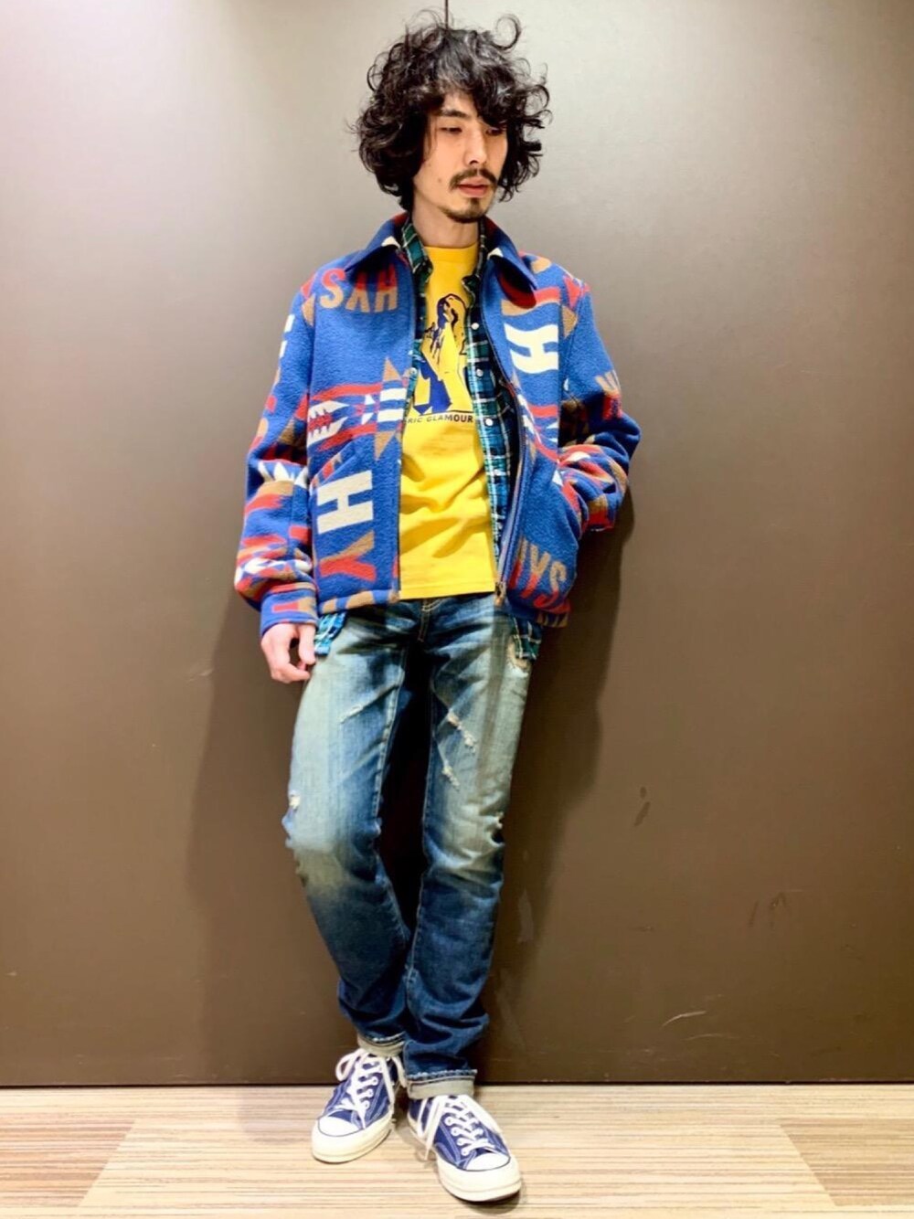ネイティブ柄のウールジャケットに、チェックシャツとデニムで冬の鉄板アメカジコーデ。