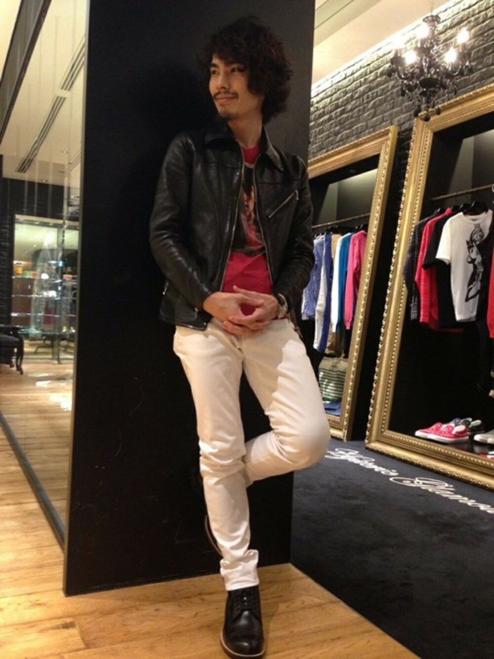 ikechan(HYSTERIC GLAMOUR銀座マロニエゲート店)のブルゾン「ラムレザーシングルライダースJK」を使ったコーディネート
