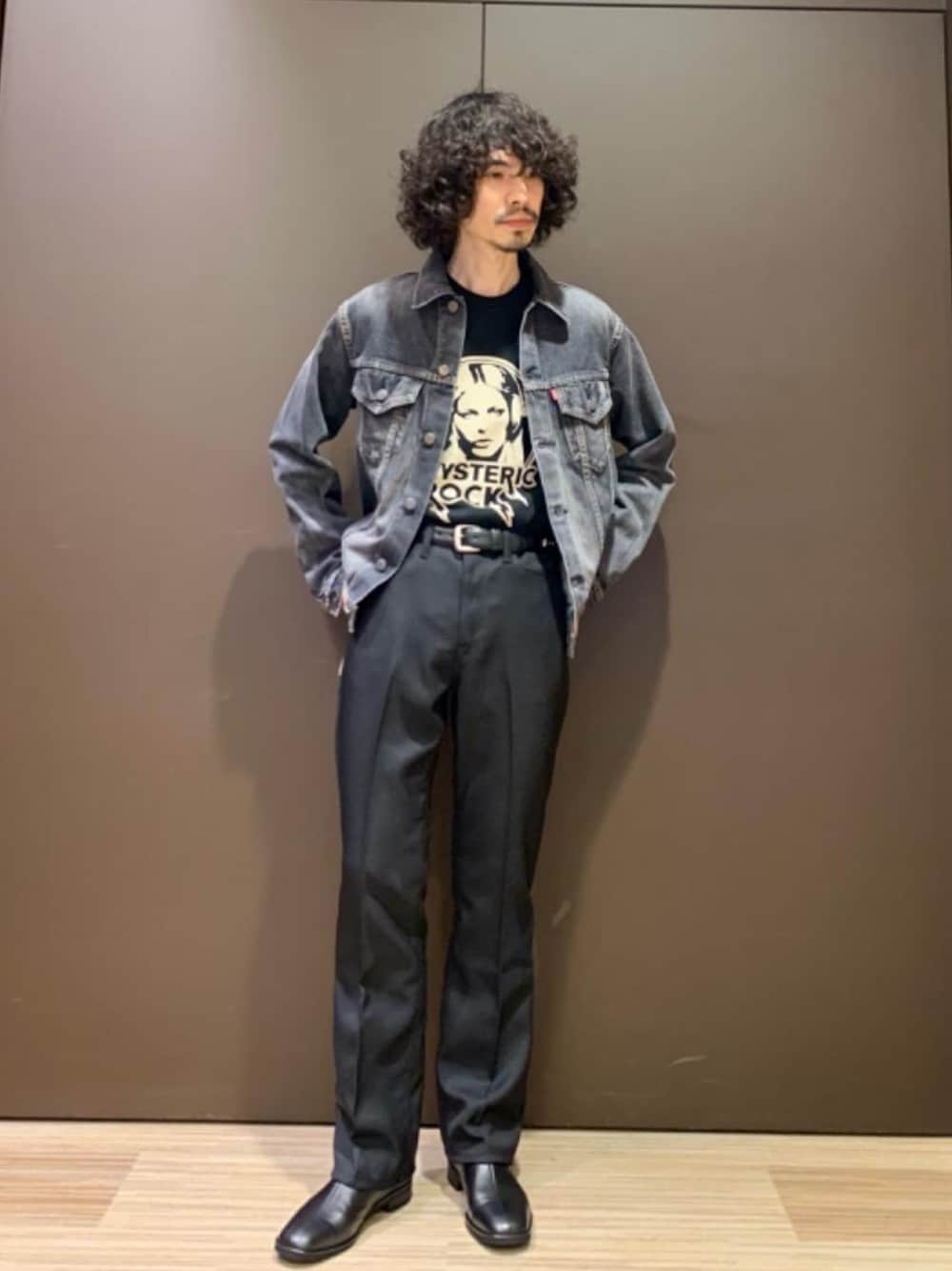 USED加工ブラックデニムジャケットは、スラックスやフレアパンツなどのきれいめパンツに合わせると、程よくカジュアルダウンできます。