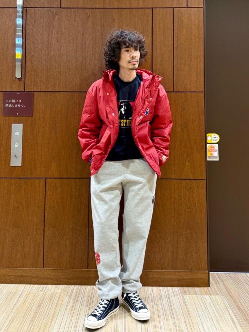 プリマロフト中綿入りブルゾンは、厳しい寒さにも安心の温かさです。マットな質感も◎です!スウェットパンツとスニーカーでラフに合わせました。