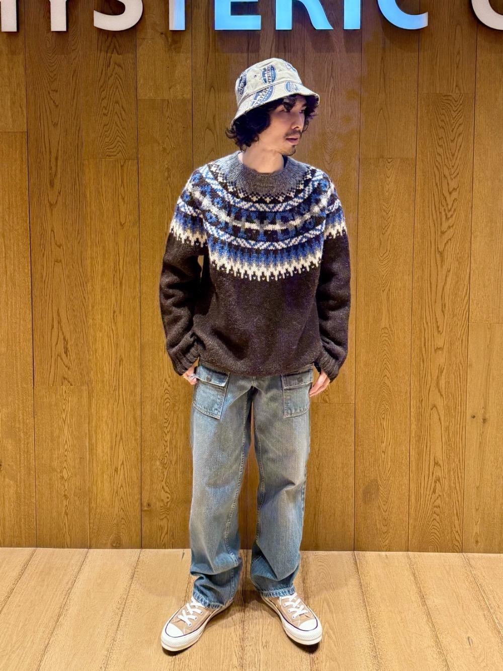 ふんわり軽く温かいブリティッシュウールのノルディックセーターに、ブッシュデニムパンツでワーク感をプラスしました。