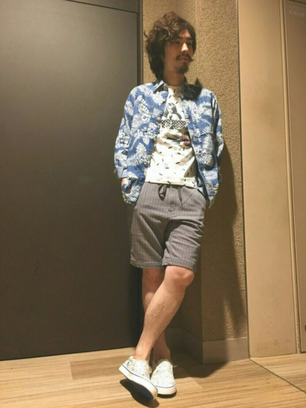 ストレッチが効いたシャツには、トロピカル柄の中にGUITAR GIRLが隠れています🎶 リゾートっぽくショートパンツで合わせたラフスタイル☆ GWに突入しましたね!夏物アイテムをチェックしにいらして下さい‼︎