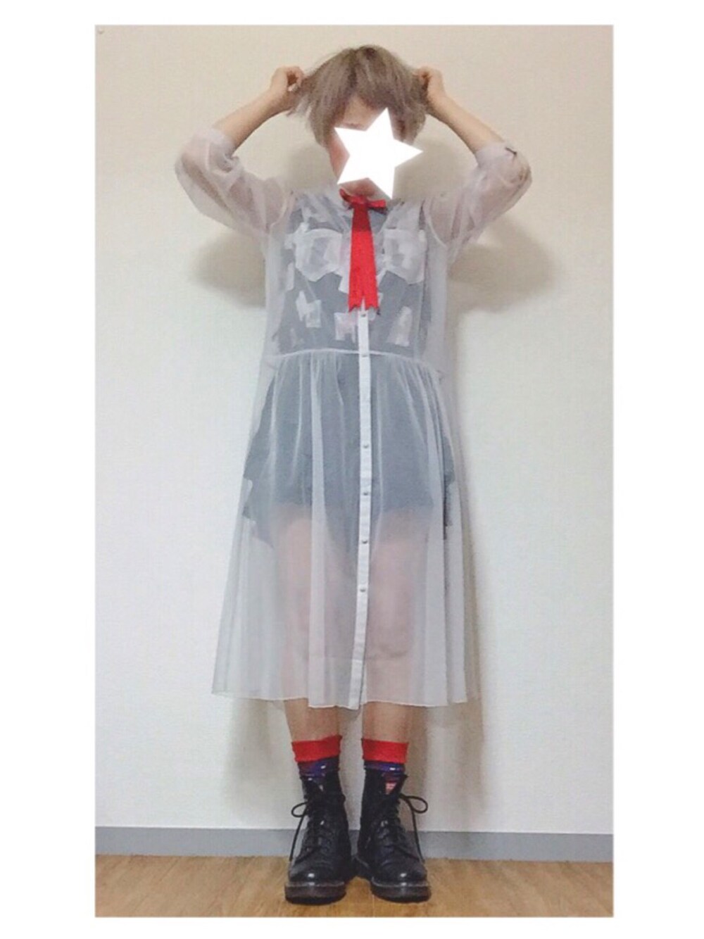 ひーこのワンピース「7S シアーシャツワンピース」を使ったコーディネート