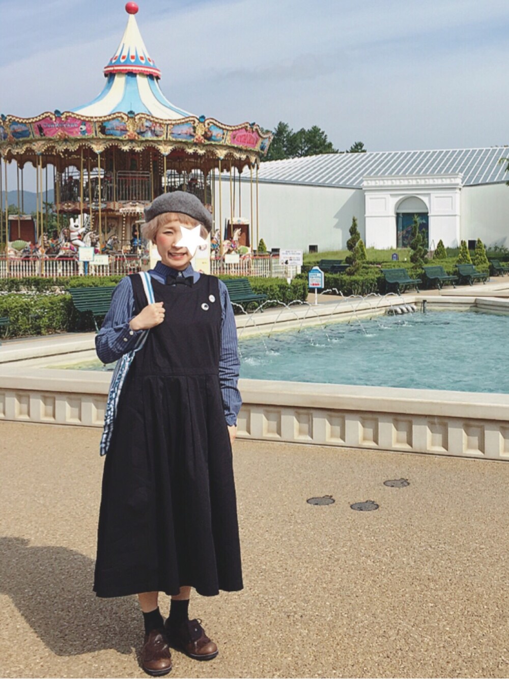 リサとガスパールタウンに来てます。のんびりとしたゆったりとしたこの空気が大好き♥ ワンピの胸元には、YUKIちゃんの缶バッチ(^^♪