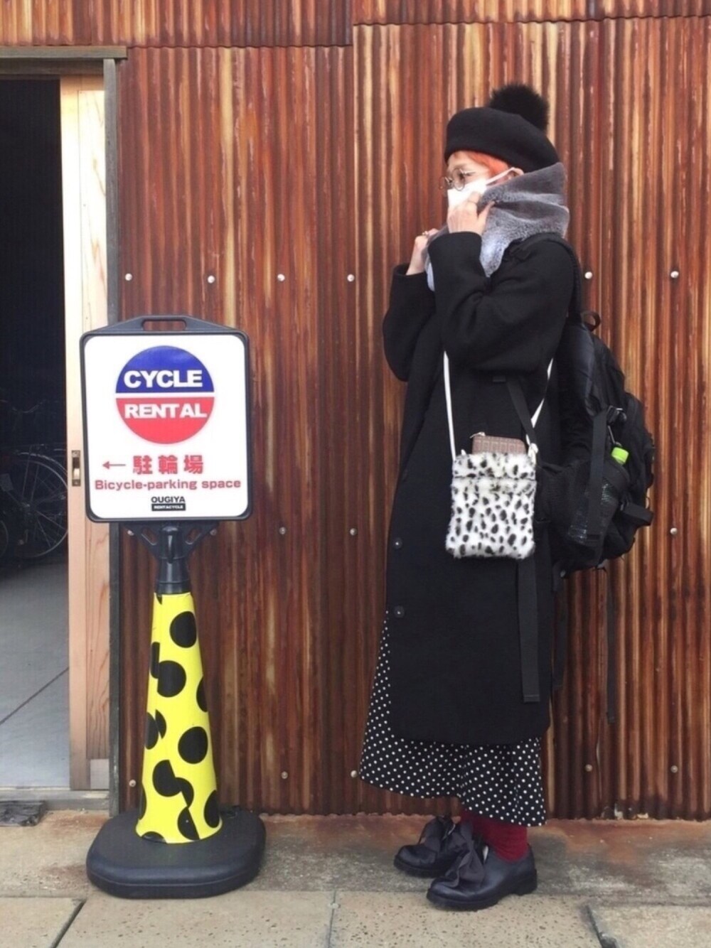 香川県の直島に行ってきましたよ! 本当はブラウスもドット。草間彌生さんのドットのカボチャ意識して頑張ったけど、コート脱げる気温じゃなかった(笑)😭😭💦