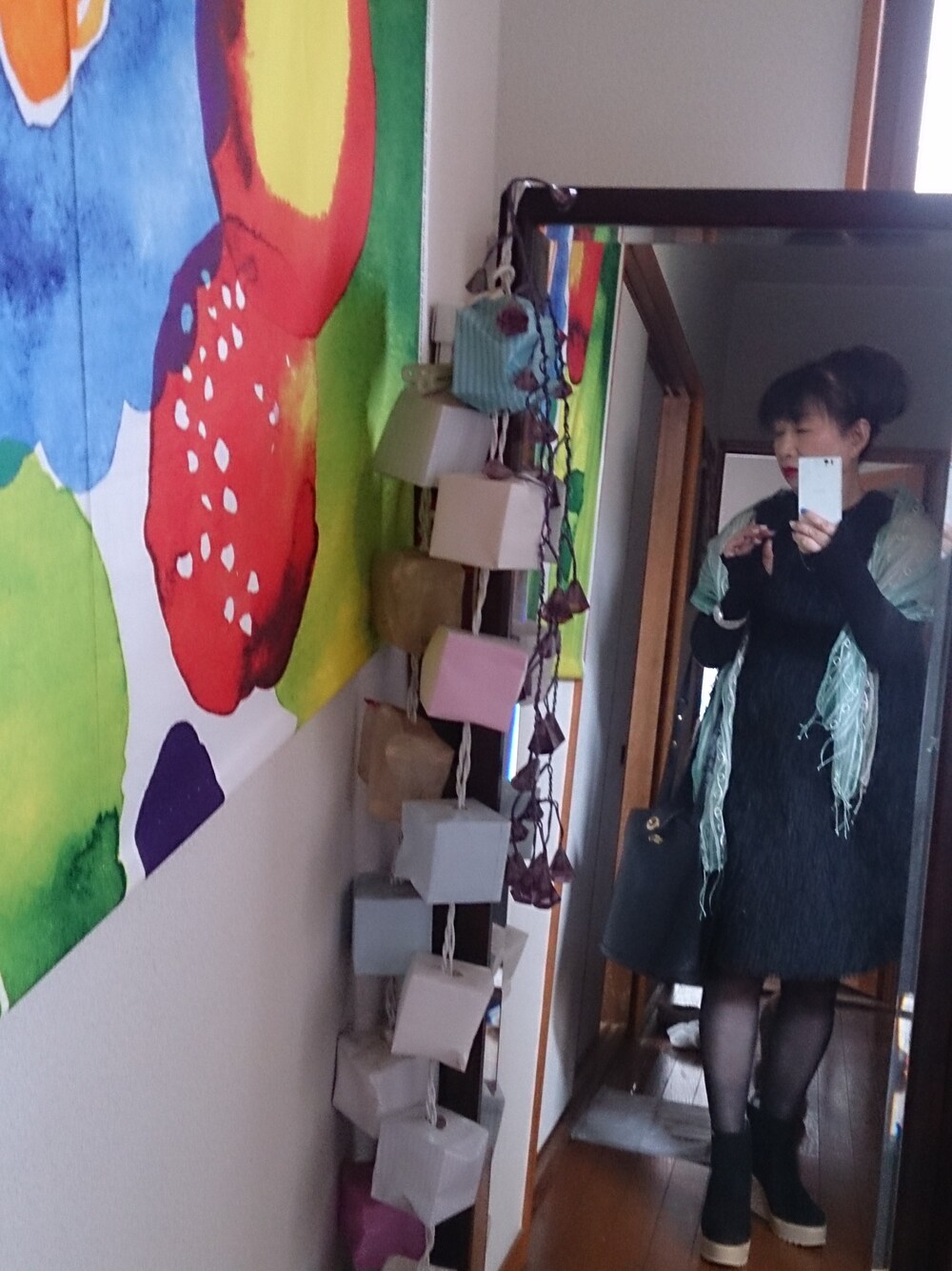 フリンジワンピースにmercibeaucoupのコブーブーツを合わせて、MOONBAT(ムーンバット)グラデストールを羽織り、時計はお気に入りを。バッグは妹に譲ってもらったヴィトンのショルダーバッグ。