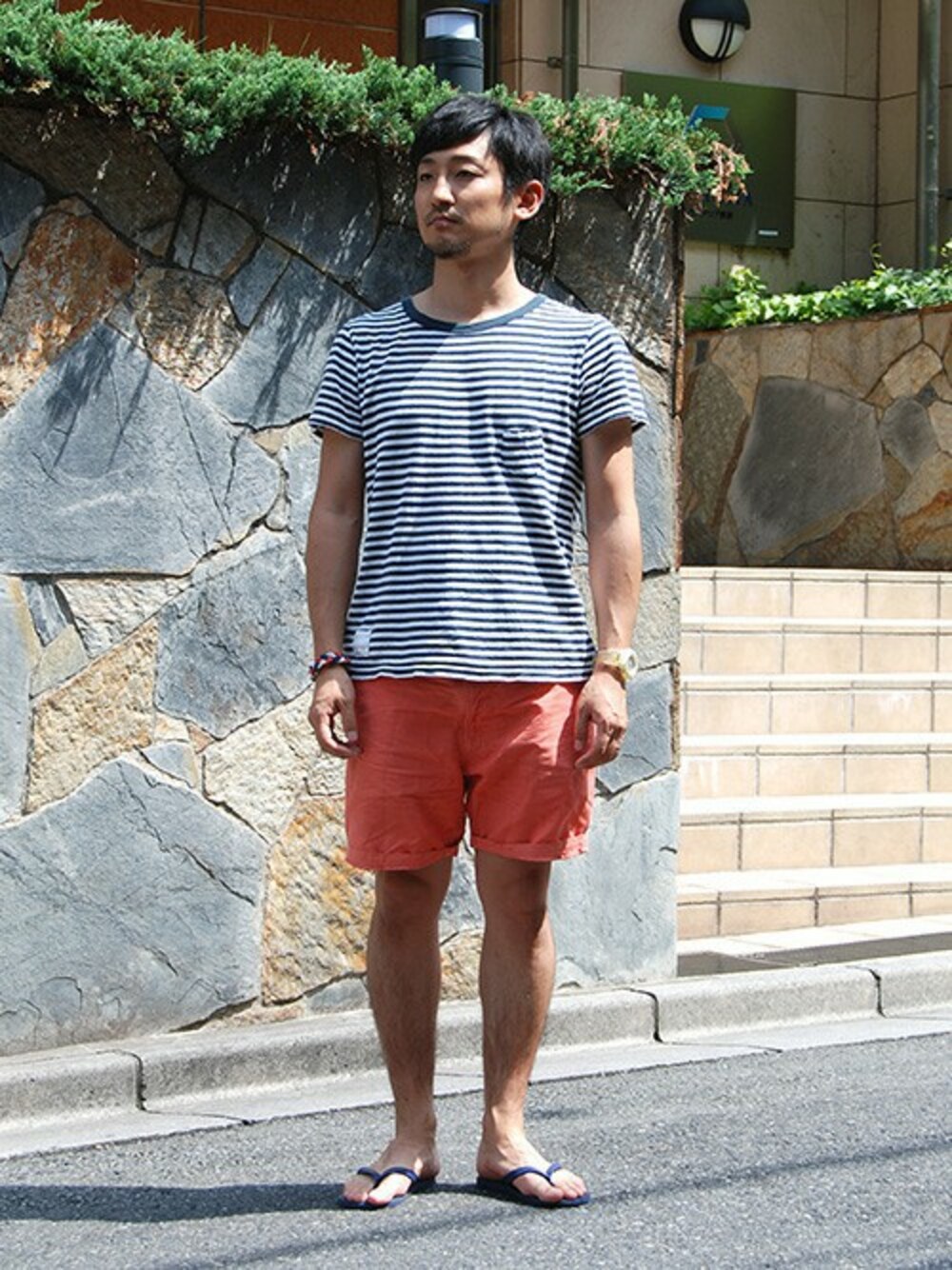 今時期には欠かせないビーサンを使ったラフな真夏のコーディネート。 踵に搭載された独自開発の『HXP Gel』は、クッション性に優れ快適な履き心地! 近所履きはもちろん、海やプールに大活躍まちがいなしのアイテムですよ!