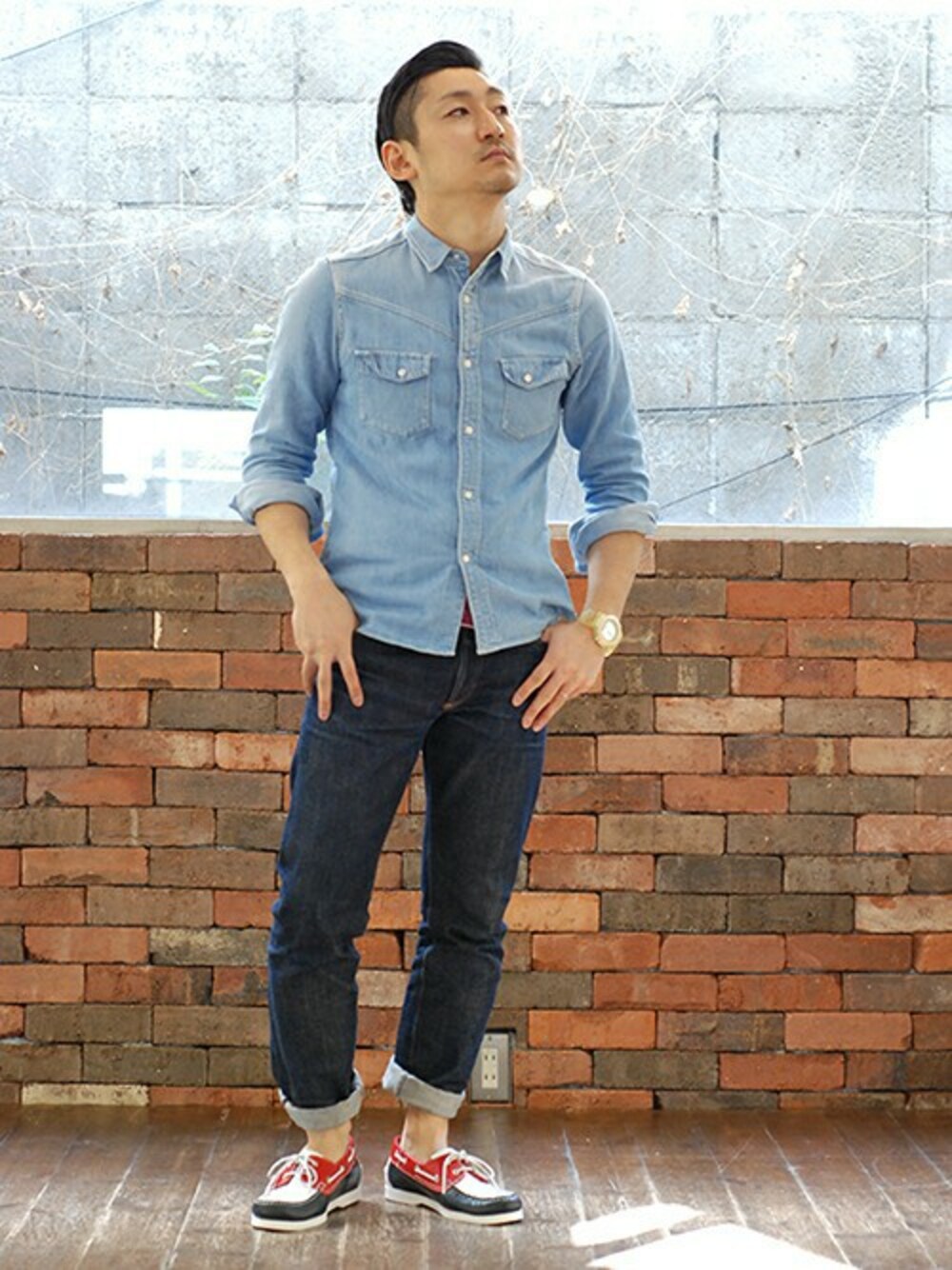 ヒロカワのモカシン/デッキシューズ「STORM(ストーム)/100 2TONE デッキシューズ」を使ったコーディネート