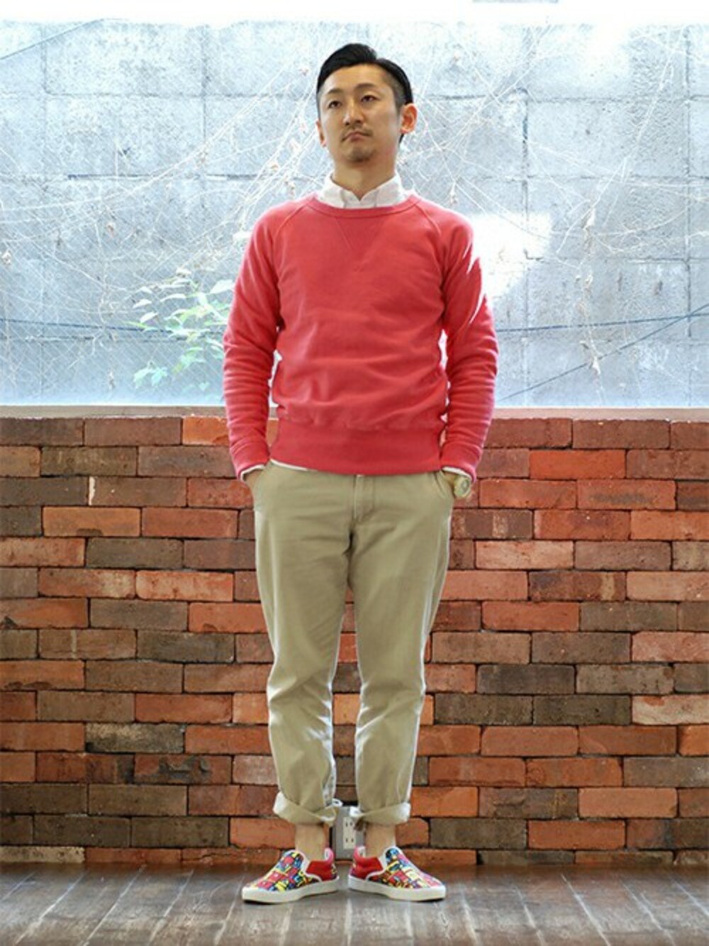 オーセンティックなデザインながら、個性的なグラフィックが目を引くbucketfeetのスニーカー。 ベースのレッドとスウェットのカラーを合わせてシンプルで統一感のあるコーディネートに。