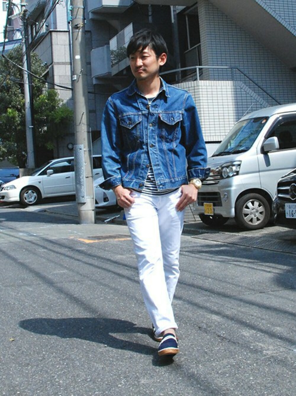 春夏に大活躍するガイモのエスパドリーユ。 旬のホワイトパンツと合わせて、大人のリラックススタイルに。