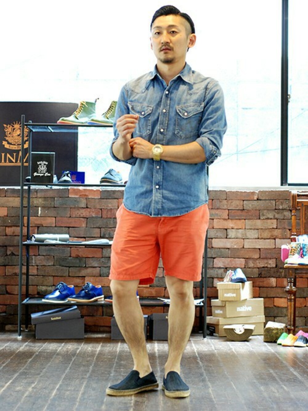 エスパドリーユとショーツの組み合わせは春夏の鉄板コーデ!素足に履けばリラックス感も満点です。