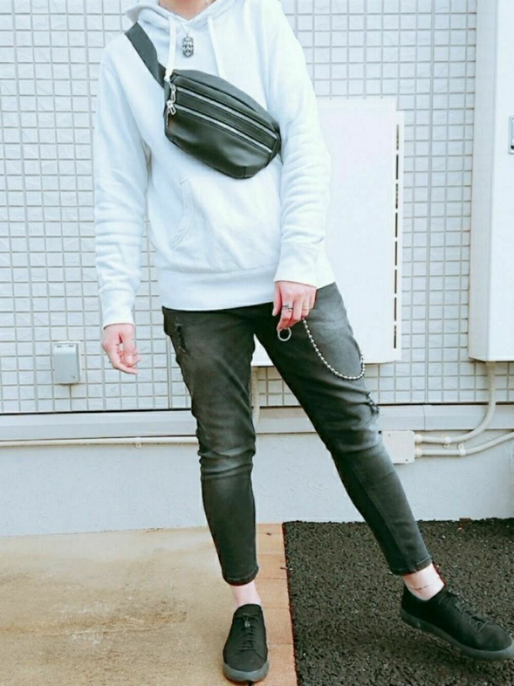 Hiroのショルダーバッグ「フェイクレザーウエストショルダーバッグ/851247」を使ったコーディネート