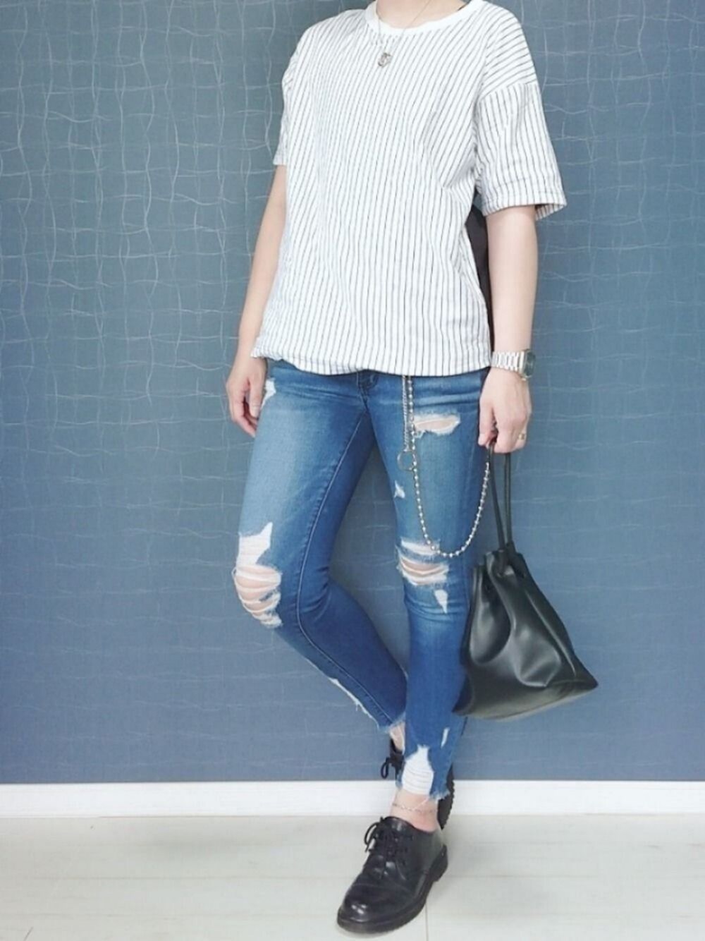 ご覧頂きありがとうございます! 良かったら、いいね・フォロー・お気に入り お願いします(⌒‐⌒) ストライプTEE×スキニー フォローしてくれたら返します!