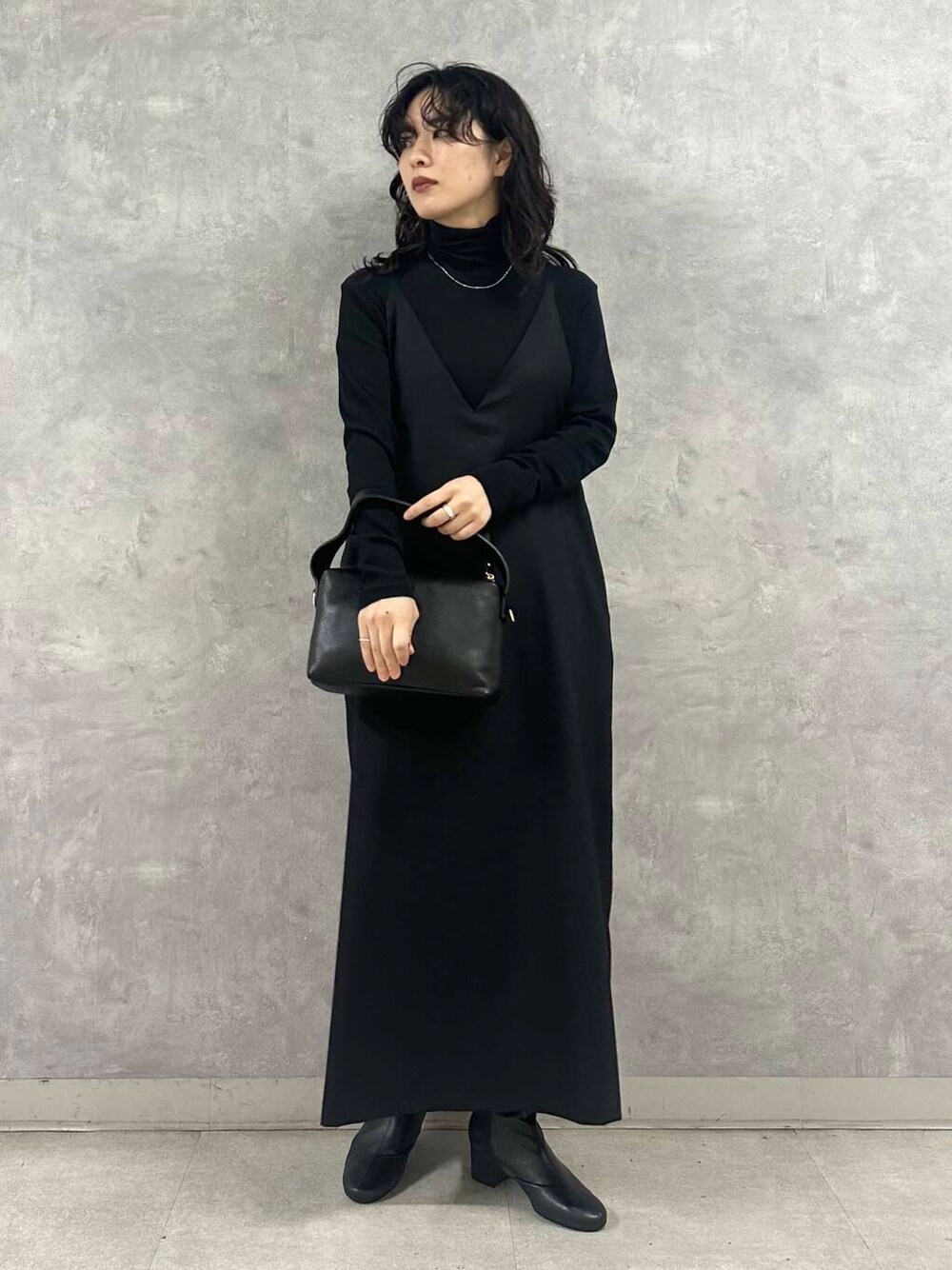 こんにちは、廣木です。 フラットなネックラインと、Vネック、2way使用になったキャミワンピース。 意外とありそうでなかったゆったりシルエットと、スリットなしのデザインなので、足捌きの良さは確保しつつ、肌見せしすぎない、良い塩梅のデザインです。 スリットワンピは座った時に少し不安感があったり、冷気が入って寒かったりと悩むポイントでもあるので、潔いスリット無し。おすすめです。 今回はインナーも黒で統一してのオールブラックスタイルに。 ウールの光沢感もあるおかげで黒黒合わせでも重く見えないので春のスタイルにもぜひ。 ぜひお試しくださいませ。 ☑️アーバンリサーチではこの度、LINE接客をスタートしております! ・気になる商品の在庫状況 ・新作商品の入荷情報 ・あの時見た商品の着回しが知りたい! ・その服の着用感ってどんな感じ? など、どんな内容でもお客様からのお問い合わせに店舗スタッフが、LINEを通じてクイックにお答えいたします。 DOORSルミネ新宿店のLINE IDはこちら→@151azhyx 着用感など知りたい方は是非、廣木をご指名くださいませ!ご指名料はかかりません。ぜひお試しくださいませ。
