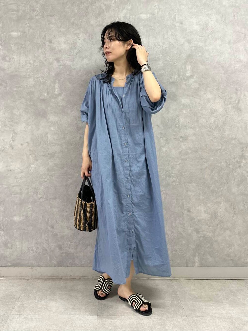 廣木真梨亜(URBAN RESEARCH KYOTO)のハンドバッグ「巾着カゴバッグ」を使ったコーディネート