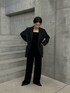 ベロアのセットアップは気分が上がりますね。 ストレッチの効く素材なので、さまざまな着こなしにマッチし、こう見えてストレスフリーな着心地です。パンツは丈が少し長めだったので、実際に着る時は私は丈詰めが必要そうな丈感でした。