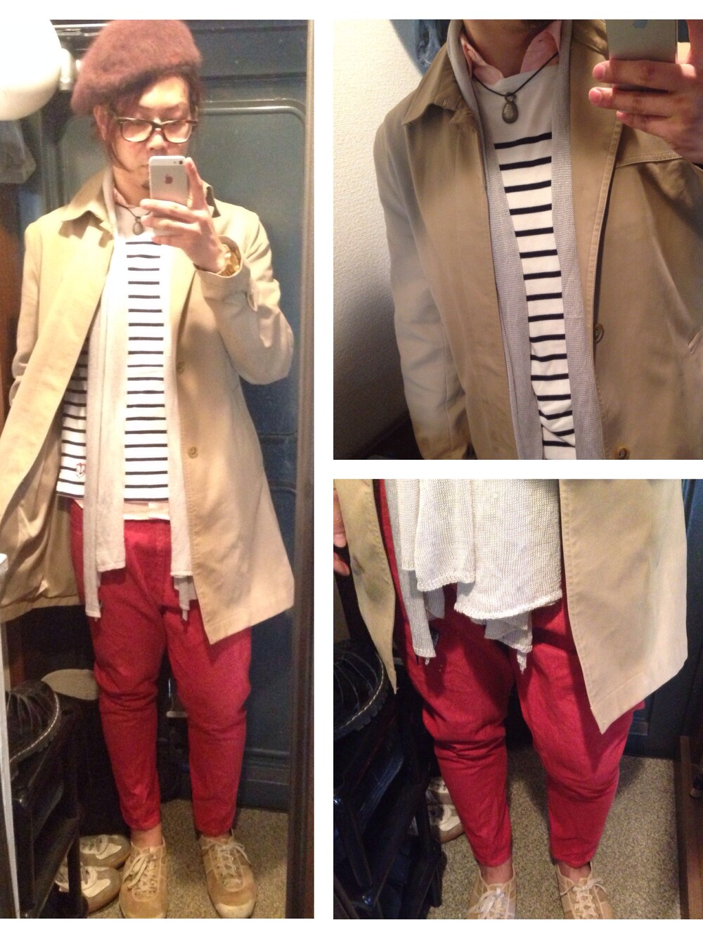 パンツ/FRABOA シャツ/古着 Tシャツ/UR トレンチ/MENSBIGI