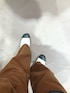 レザーシャツ×ブラウンカラーパンツコーデ✨ インナーとスニーカーをシンプルにして、大人見えするコーディネートにしました!