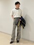 トラックジャケットにデニムパンツを合わせました サイドゴアブーツを合わせて、よりエレガントな雰囲気で合わせました。