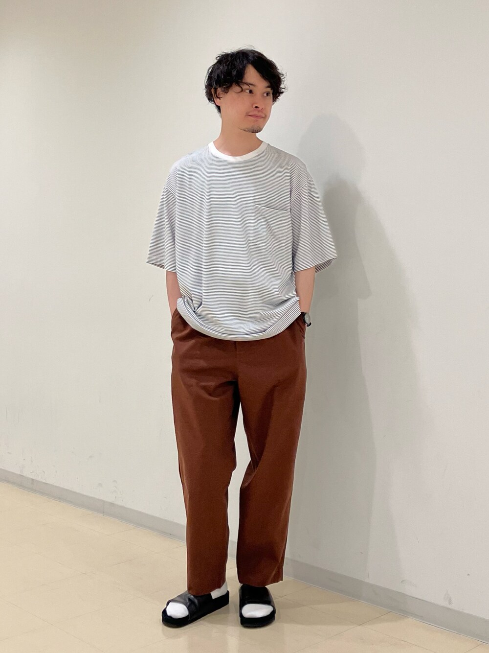 Hiroki.yのTシャツ/カットソー「handvaerk | 60/2 半袖ビッグTシャツ STRIPE MEN」を使ったコーディネート