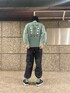 古着コーデ カナダ製のレザーアウター USA製のリブ付きトラックパンツ トレーナーは何年か前のH&Mの麻雀デザイン🀄️