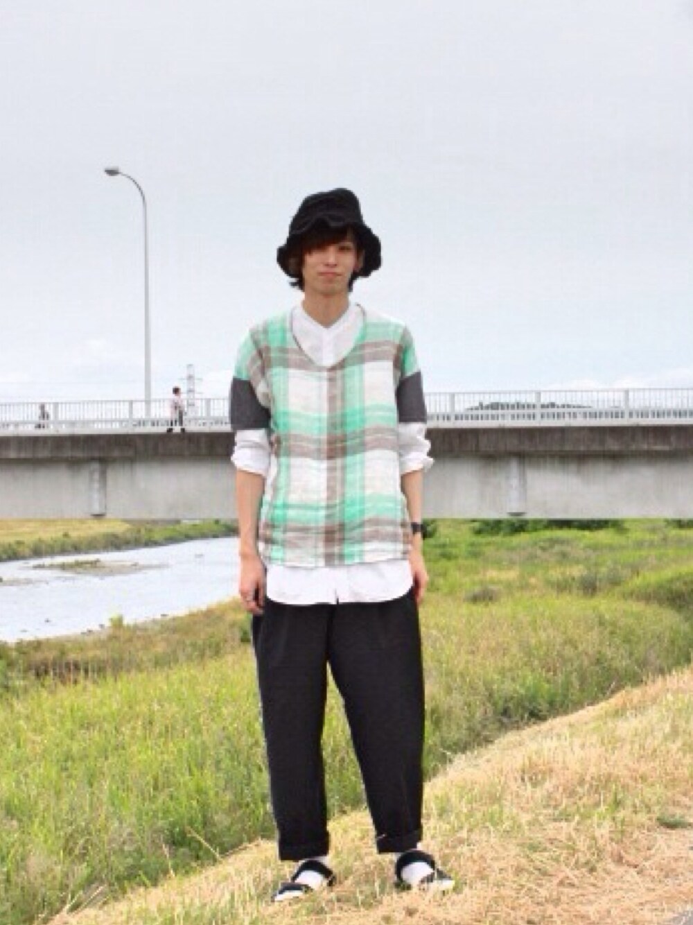今回で100コーデ目! WEARをはじめて1年ちょい やっと100コーデいきました〜 次は200コーデを目標にします! ohtaのTシャツは前身頃が麻のシャツ地でちょっとかわったアイテムです 麻は涼やかな感じが良いですよね🙆