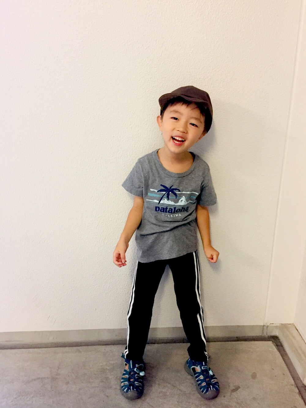 初☆投稿です。 宜しくお願いします。 ハワイで購入したパタロハTシャツ☆ ハーフパンツでは寒くなってきた季節。 日曜の朝、お散歩スタイル☆