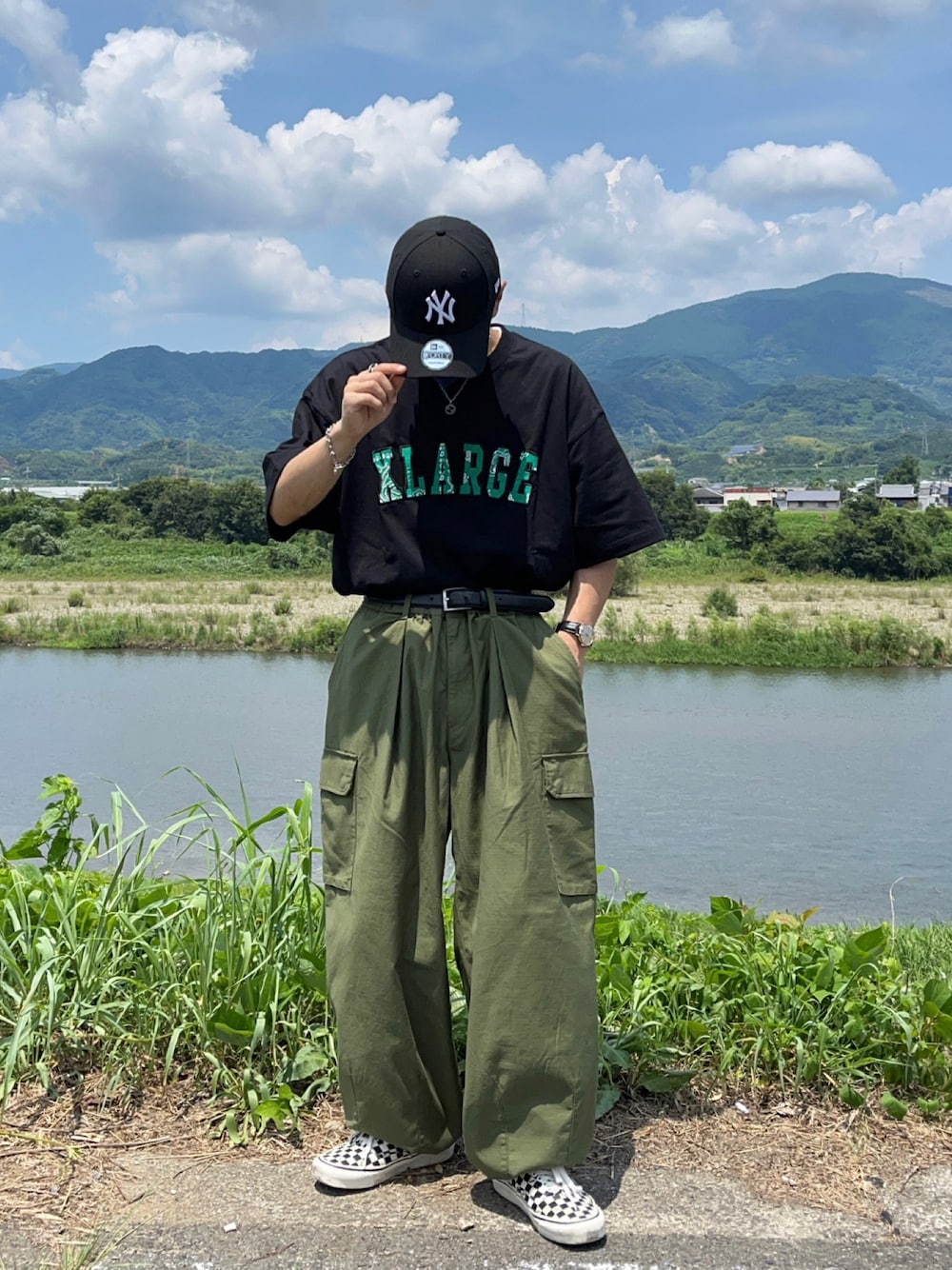 本格的に暑くなって来て、夏服コーデ沢山撮ってるけど、1番お気に入りと言ってもいいくらいのコーデ!! ラージのTシャツにカーキのカーゴパンツが相性良すぎて👍👍 ------------------- いいね、フォロー、コメント お待ちしてます! -------------------