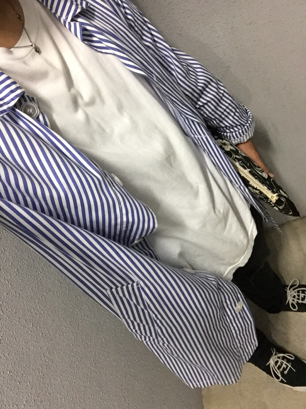 ロングシャツコーデ ゆったりのカットとタイトのパンツを合わせるのがポイント ハットも黒でまとめてみました