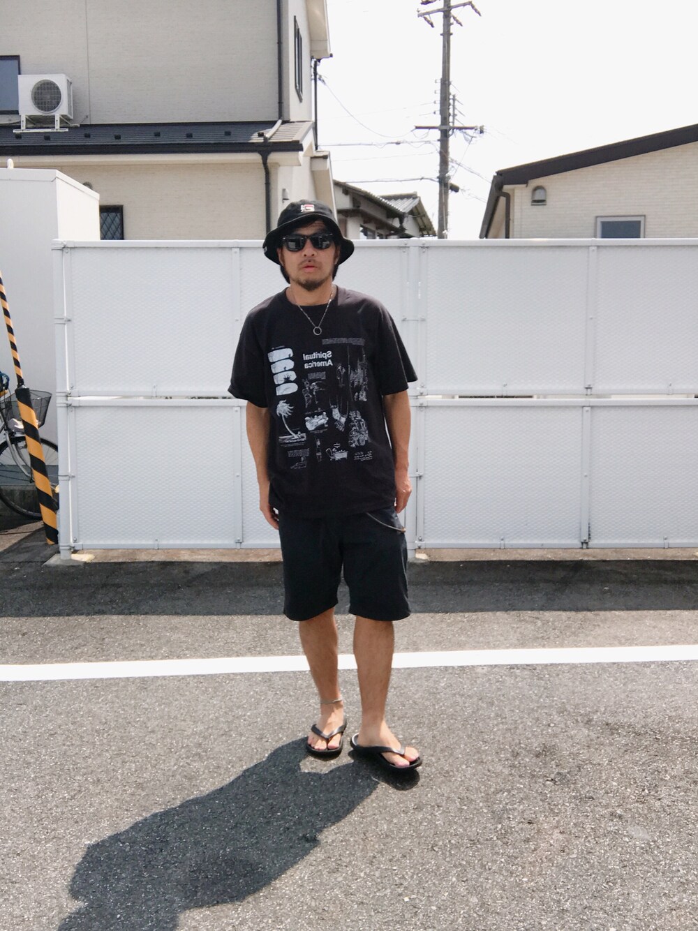 オールブラックコーデ🖤 ブラックのプリントTEEはHEXICOのhanes beefyに1953年のアメリカ雑誌「PLAYBOY」から挿絵を切り取りコラージュしてプリントされたものらしいです。 バニーヘッドなどのキャラなどアメリカを感じる1枚です♡♡