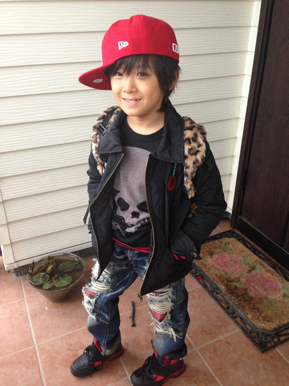 3番目のお兄ちゃんに登場してもらいました♡ かっこいいながらもカジュアル感を出して差し色で、あえてキャップは赤にしてみました♡