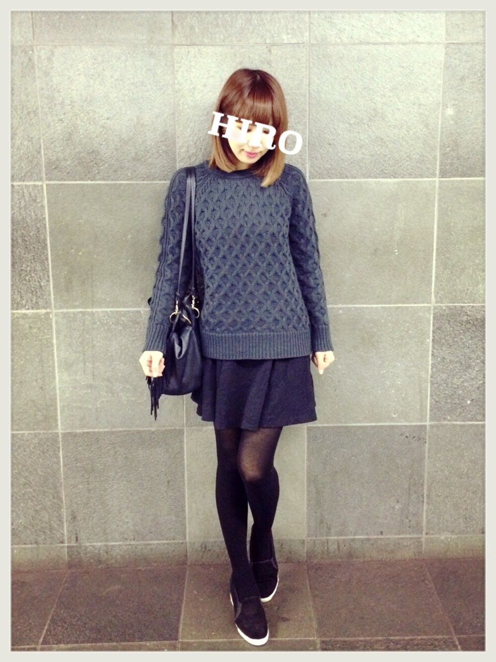 skirt...moussy カーキ色のニットはmira owenで。 ポコポコした表面感が特徴のニットは、厚手に編まれているのでずっしりとした重厚感があって、あったかいです。