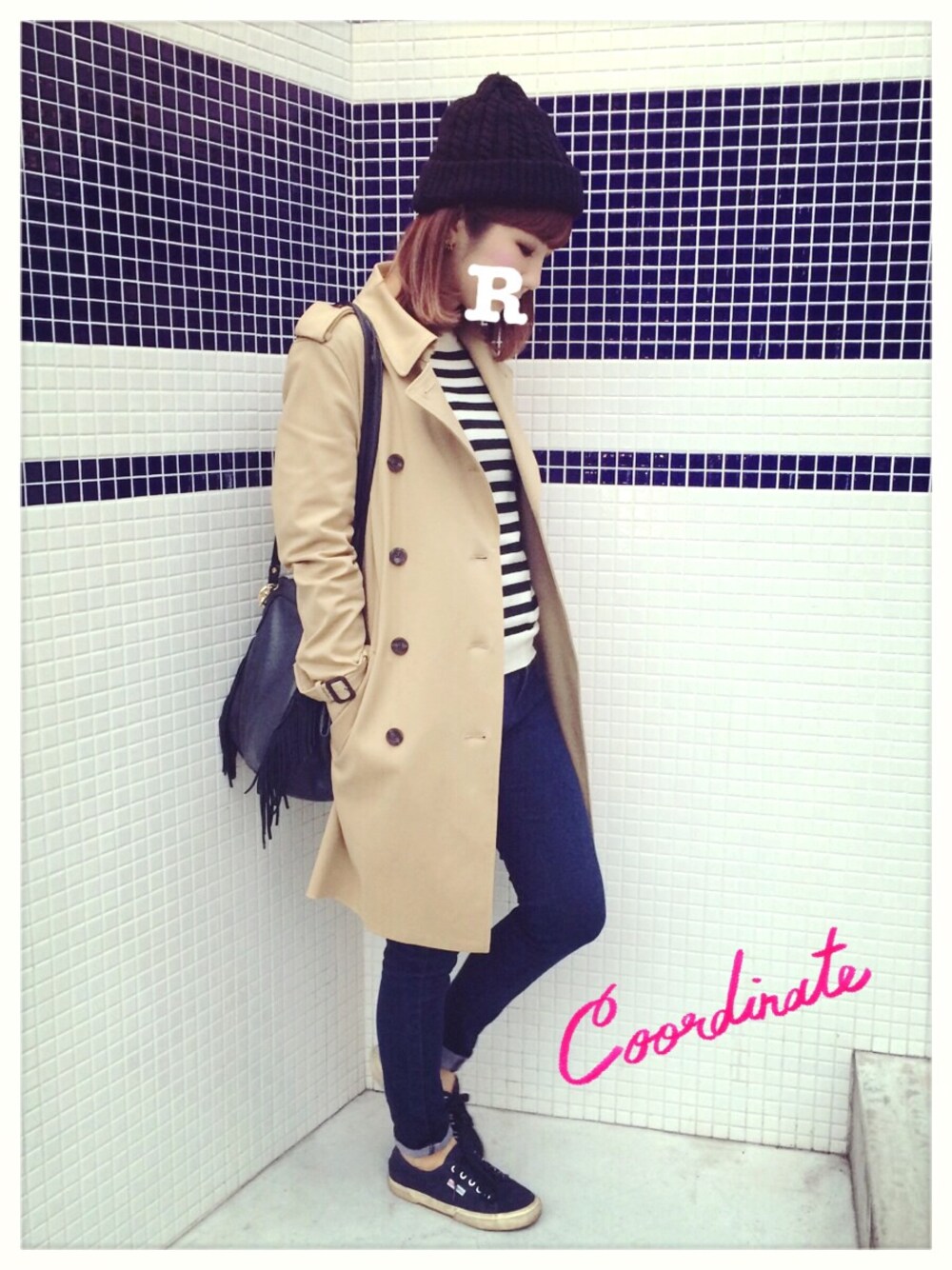 トレンチコート…studious ニット…IENA デニム…UNIQLO 靴…SUPERGA