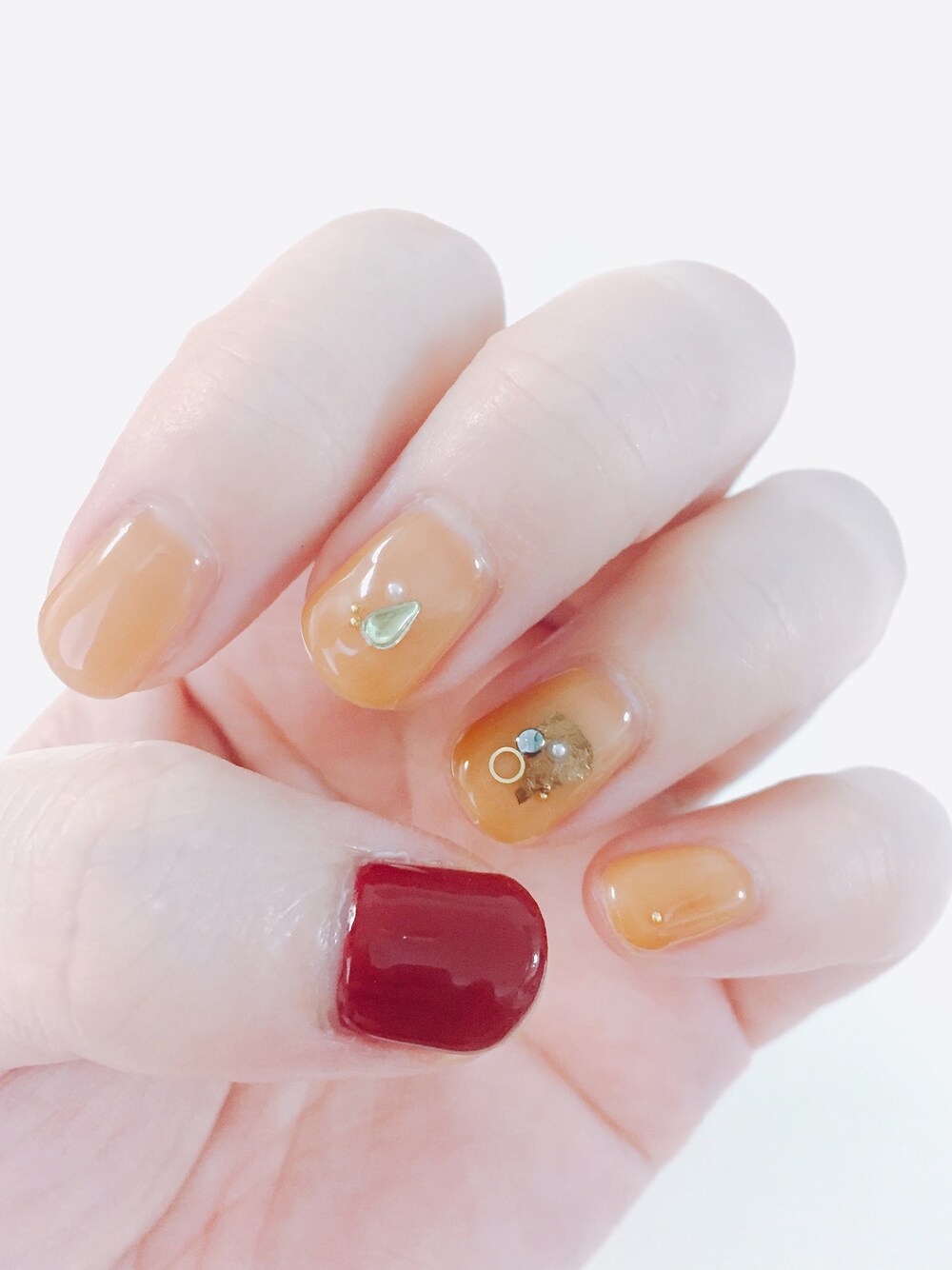 秋色。 キャメルと赤で。 透け感が良いです。