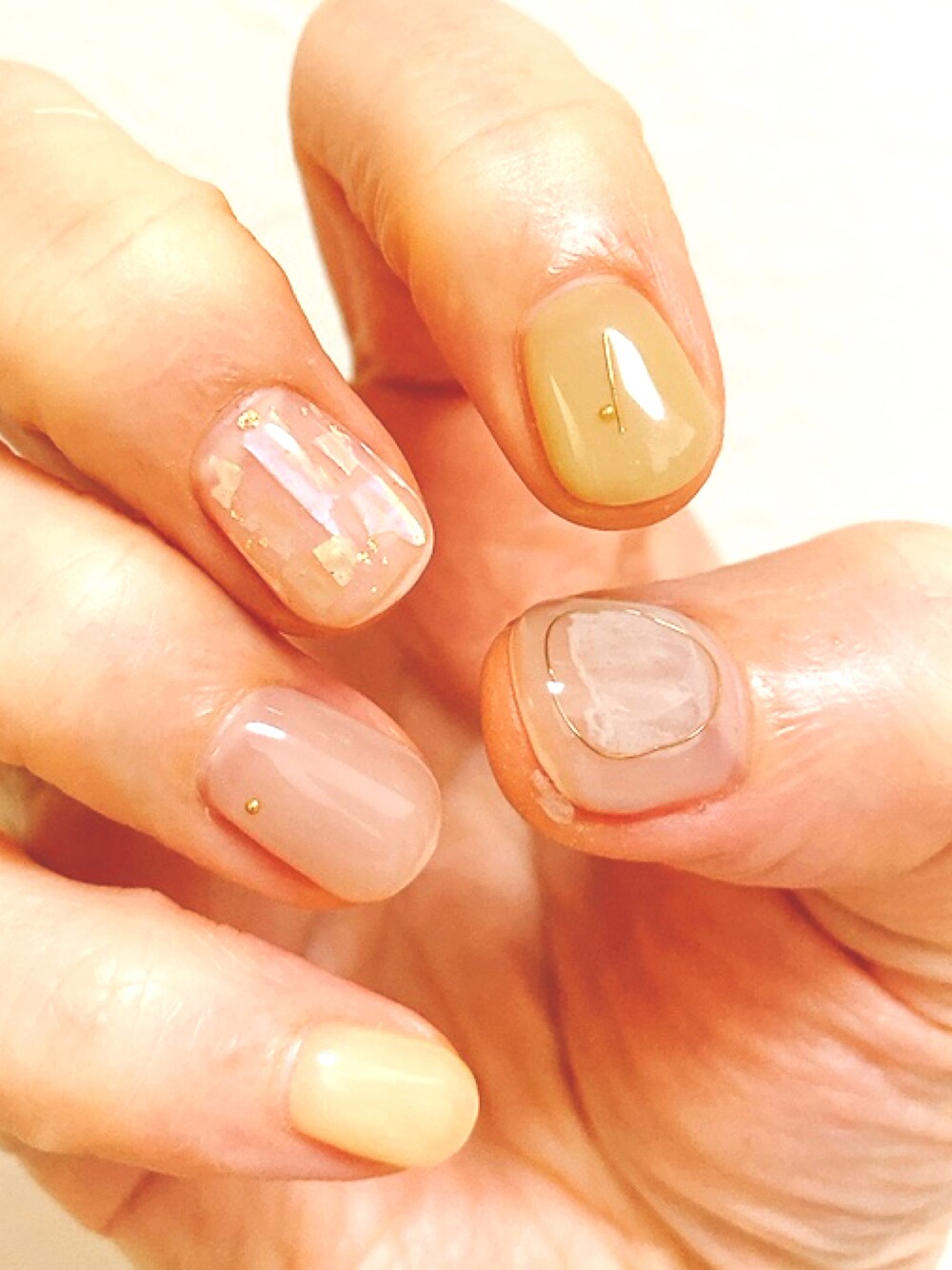 写真撮るのが下手すぎですが、 薄いグレー、グリーン、イエローベース ワイヤーやシェルが入ってます