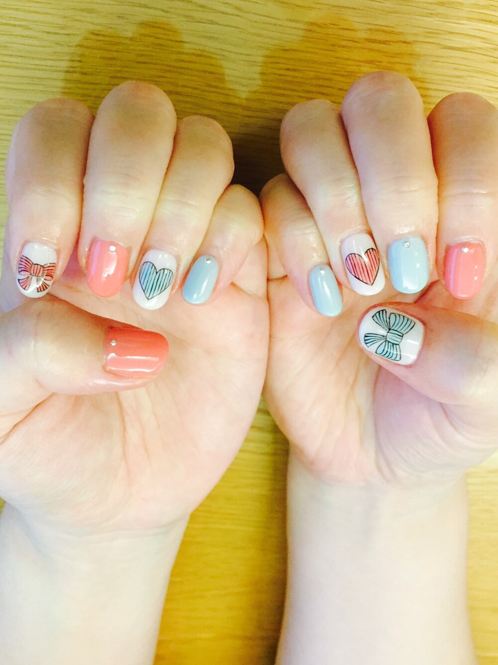 1月は、ピンクと水色でテンションあげて! 名刺出すこと多い時期、親指かわいく♡