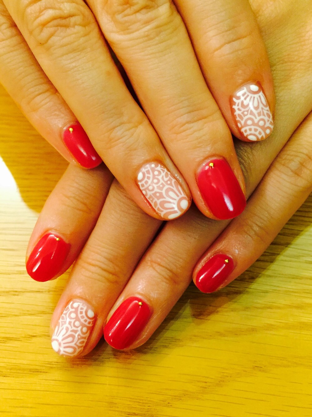 ボルドーだけど、写真だと赤に見えてます♪ ( ´▽`) レース柄を描いてもらいました☆