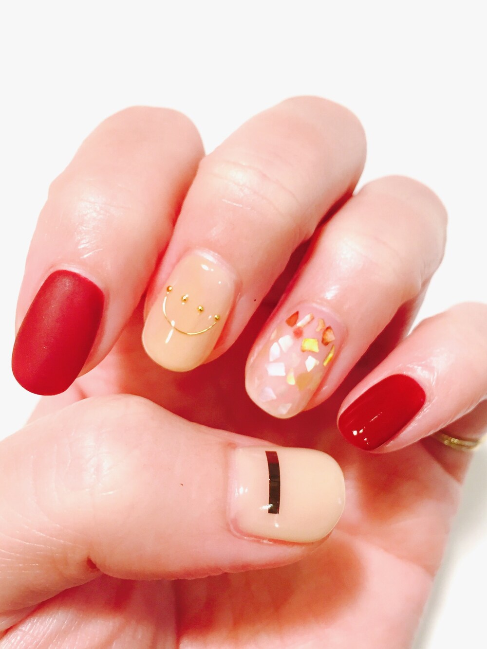 秋色にチェンジ☆★☆ ボルドーの一本とシェル配置の指だけマット仕上げにしてもらいました♪