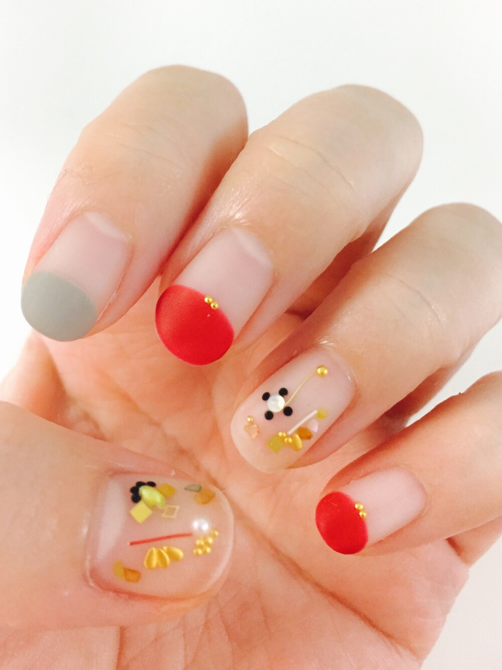 テンション上げる赤! お花かわいい☆左手 マット仕上げ